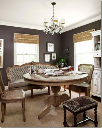 i love the look of charcoal colored walls.  i think i would like them best in a bedroom.  i really like the contrast of the baby blue bed against the dark walls in the picture below.dark walls
